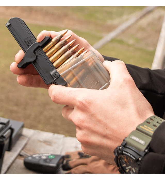 • Loads both 10-rd stripper clips and ten loose rounds.